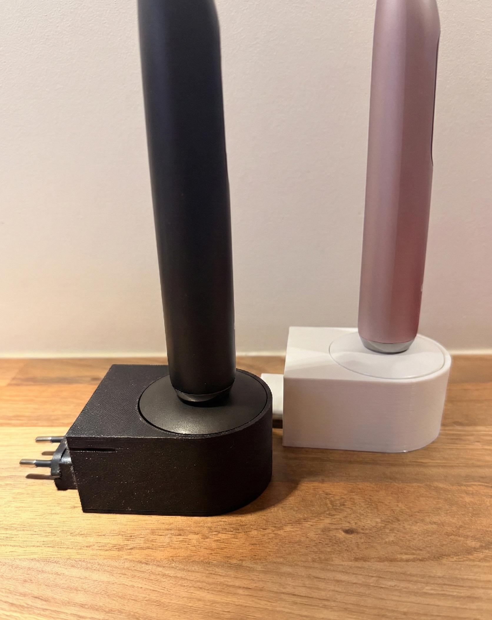 Plug into the outlet and dock your toothbrush