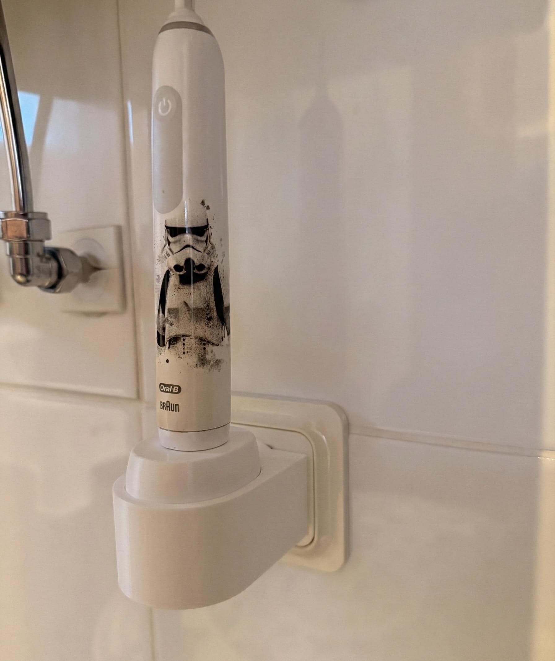 Creates an outlet-mounted charging stand for your Oral-B iO